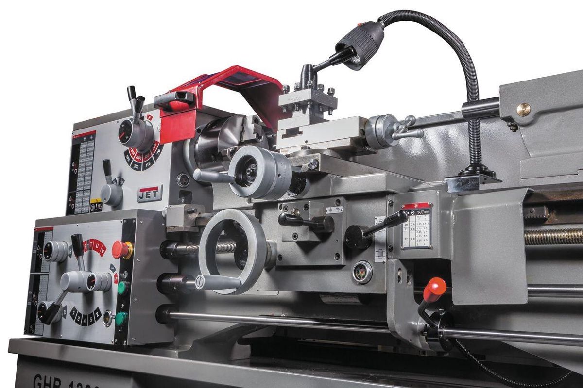 Мощный производственный станок JET GHB-1340A DRO — эффективно справится со многими задачами (проточка, подрезка, нарезание резьбы). Коробка передач позволяет нарезать резьбу без замены шестерен. Механизм привода шпинделя постоянно работает в масляной ванне. Мощность — 2800 Вт. Диаметр обработки над станиной — до 330 мм.