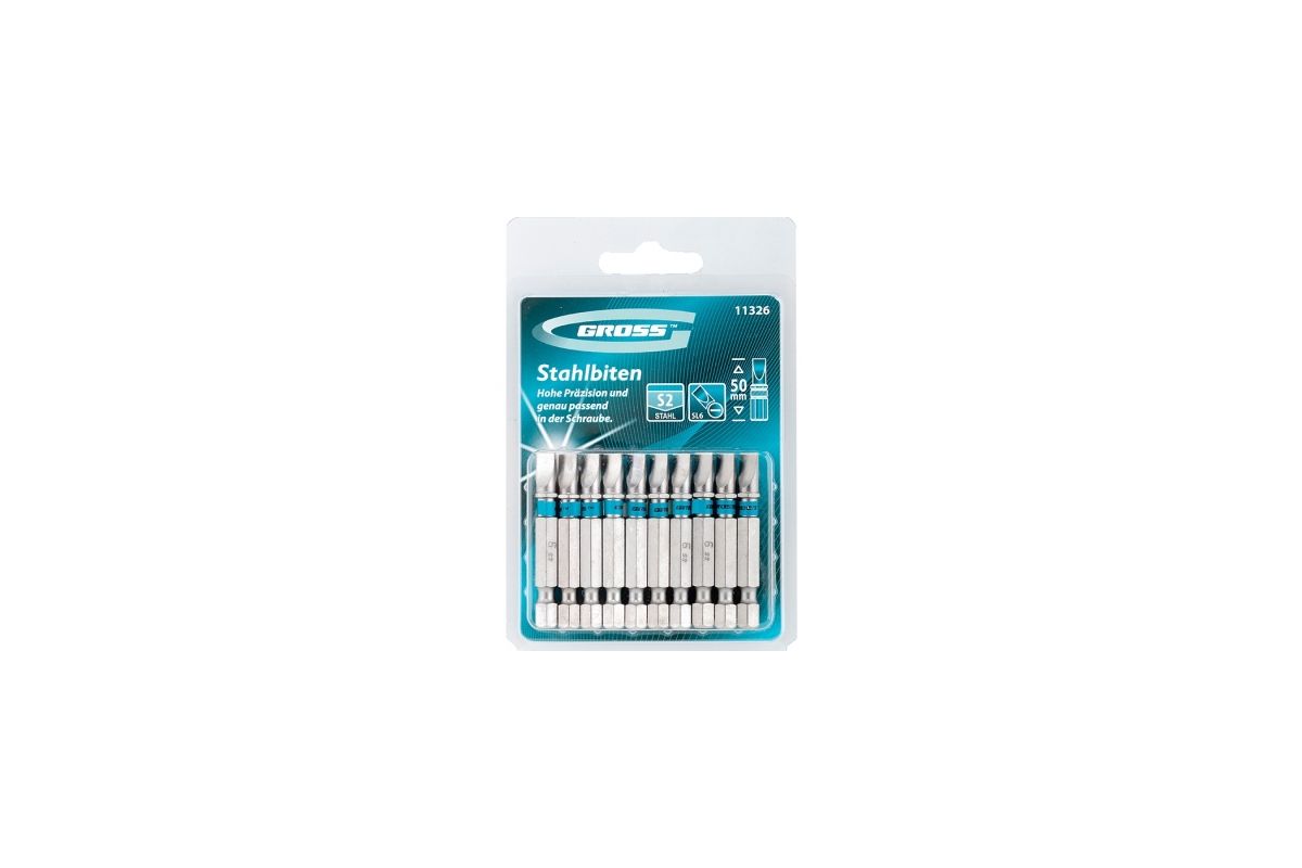 Набор бит Gross SL6,0х50 арт. 11326 включает 10 сменных насадок для шуруповертов и отверток-адаптеров с присоединительным шестигранником 1/4''. Биты со шлицами «минус» размером 6 мм применяются при монтаже и демонтаже резьбовых соединений: винтов, саморезов и др.