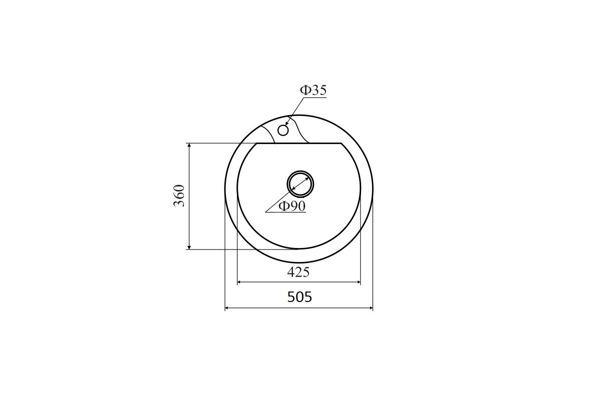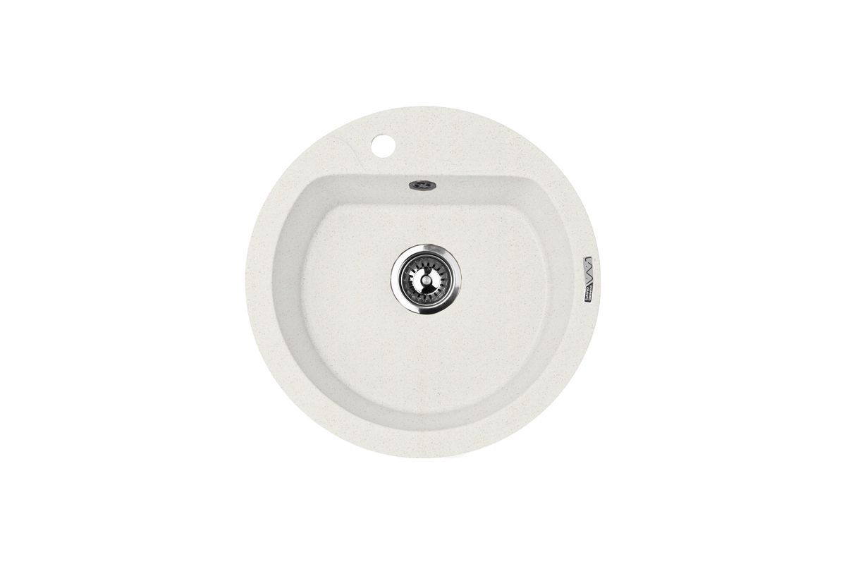 Круглая мойка с самой большой по диаметру чашей 42,5 см.и самой глубокой 21 см. Ширина установочной тумбы не менее 50 см. Вырез под мойку диаметр 47,5 см. Установка сверху. Одно сквозное отверстие и одно намеченное. Сливная арматрураи сифон в комплекте.