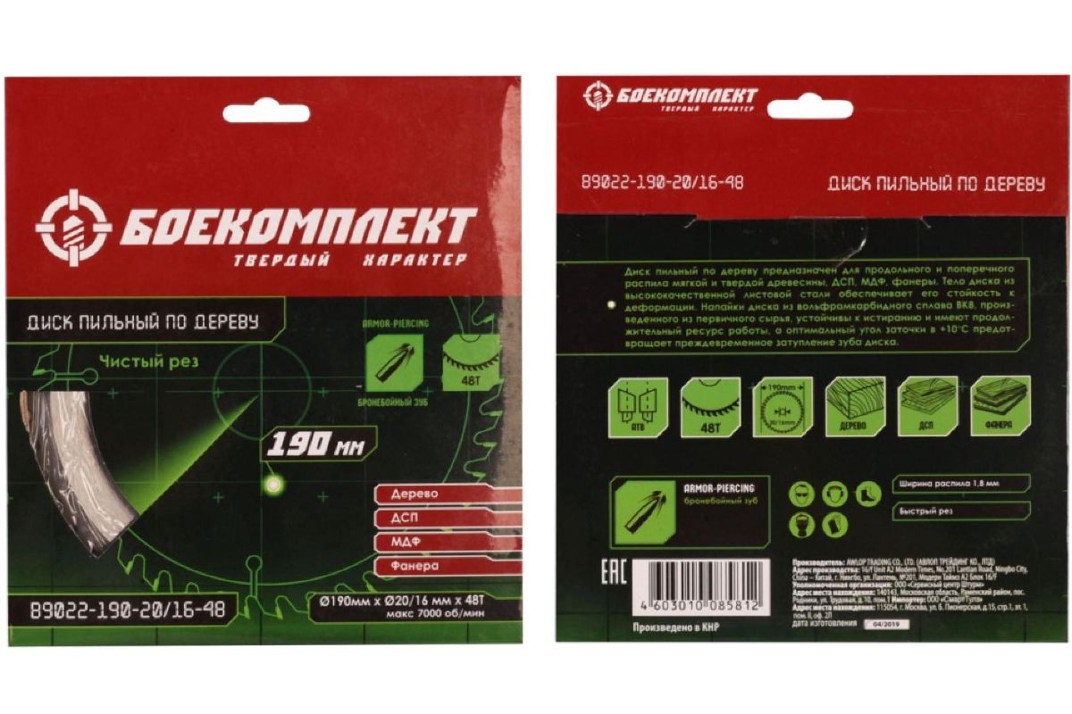 Диск пильный по дереву предназначен для продольного и поперечного распила мягкой и твердой древесины, ДСП, МДФ, фанеры. Тело диска из высококачественной листовой стали обеспечивает его стойкость к деформации. Напайки диска из вольфрамкарбидного сплава ВК8, произведенного из первичного сырья, устойчивы к истиранию и имеют продолжительный ресурс работы, а оптимальный угол заточки в +10 ?C предотвращает преждевременное затупление зуба диска.